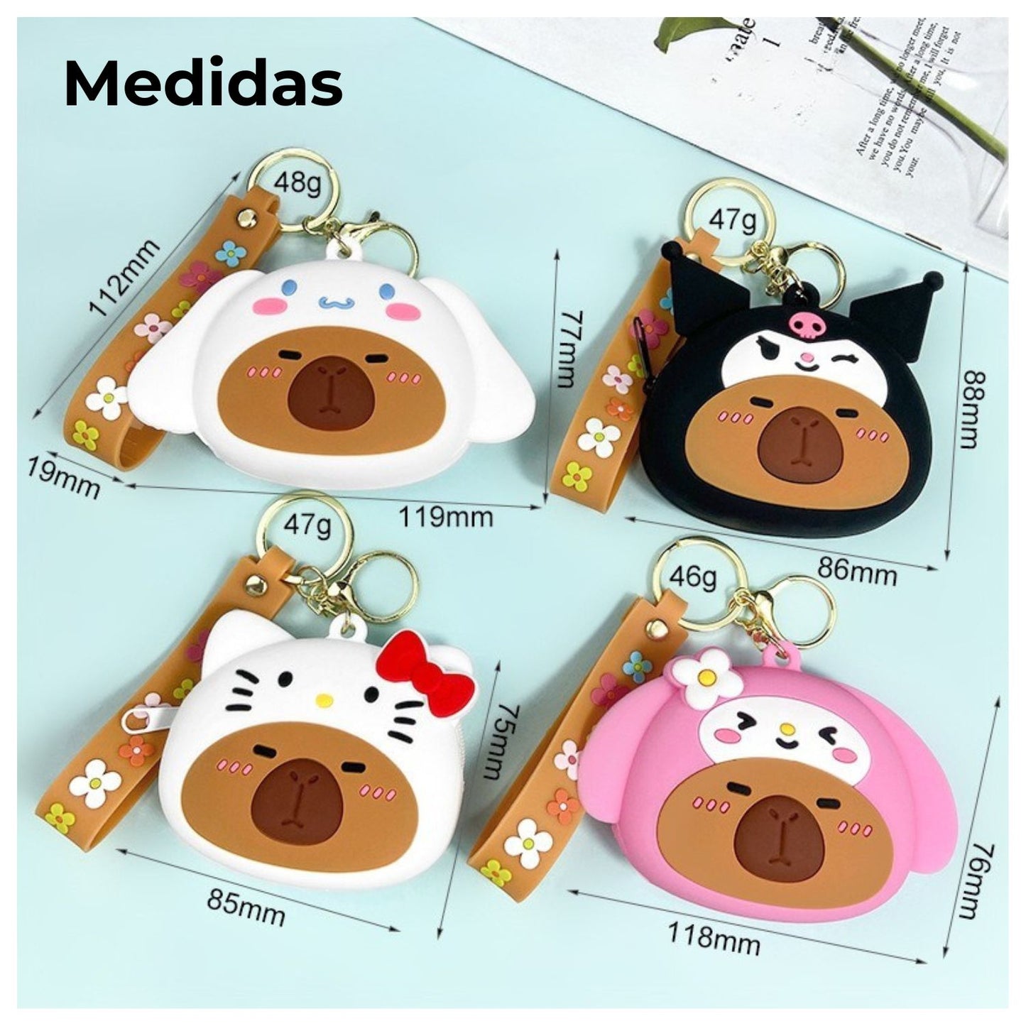 ¡Dale un toque adorable y único a tu colección con este monedero de silicona Capibara disfrazado de tus personajes Sanrio favoritos! Compacto, práctico y lleno de ternura, es ideal para quienes aman los accesorios kawaii y los productos originales y coleccionables.